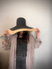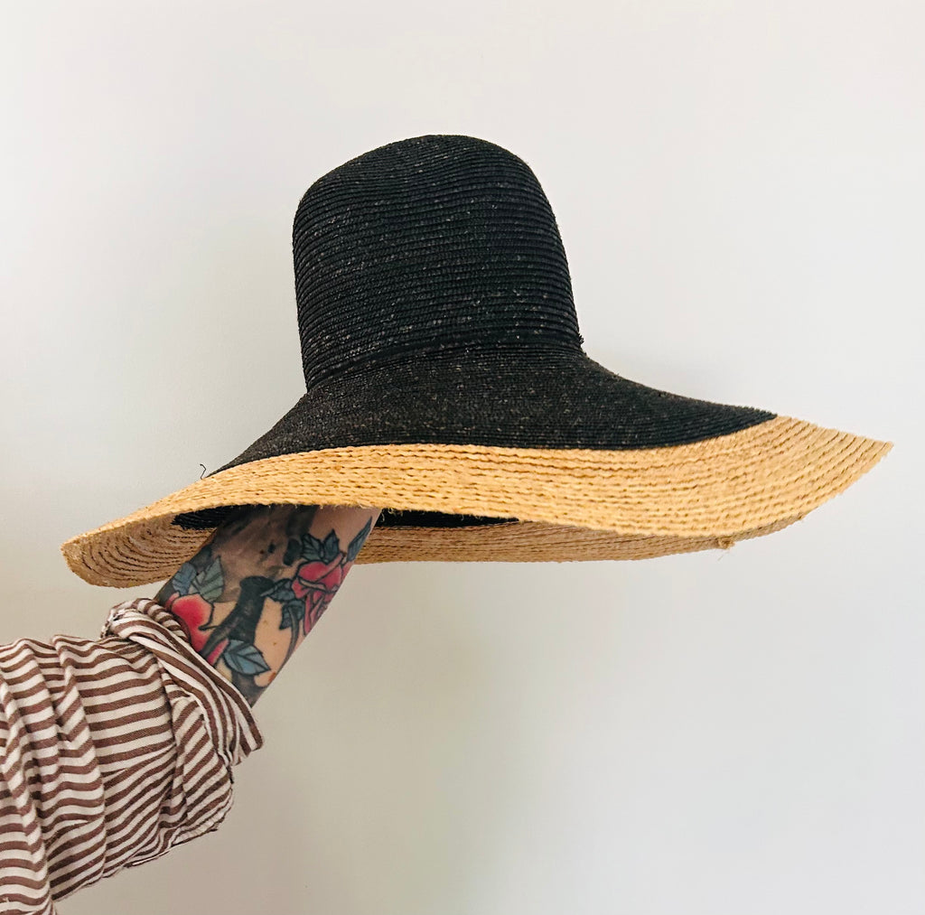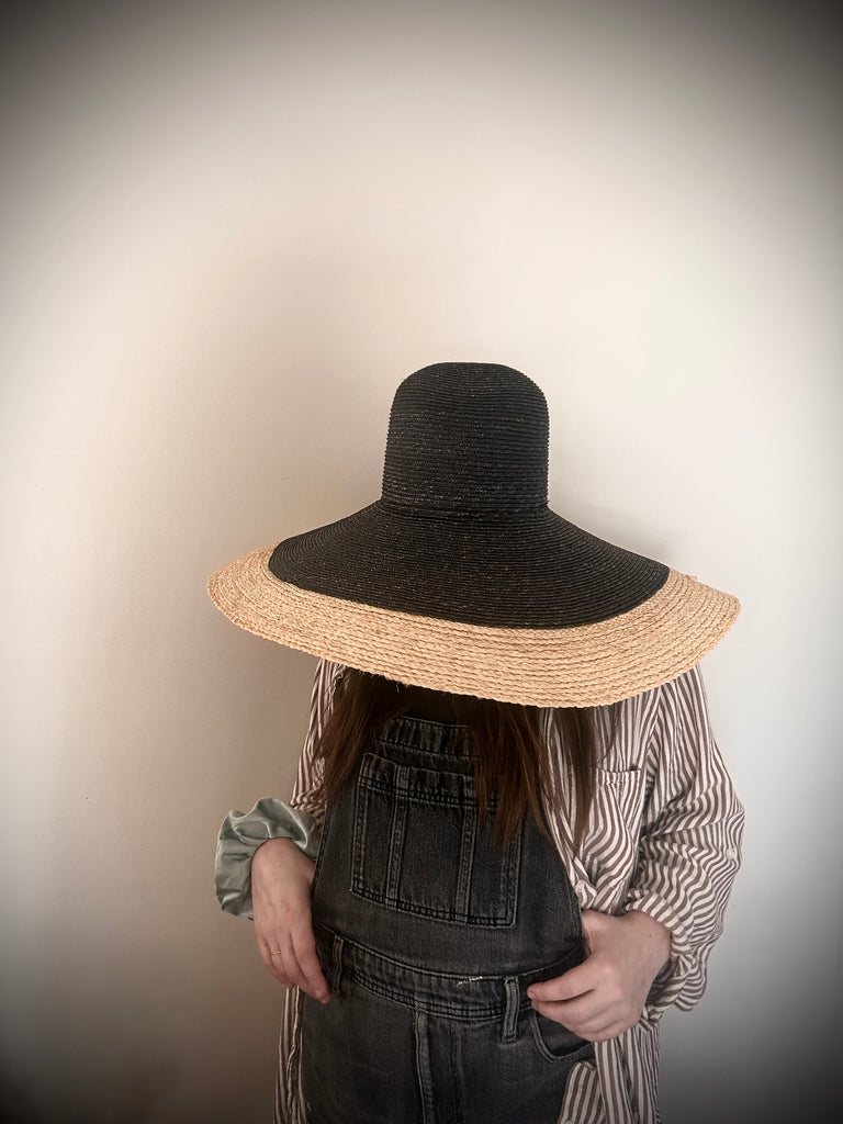 7” brim made of straw braid.